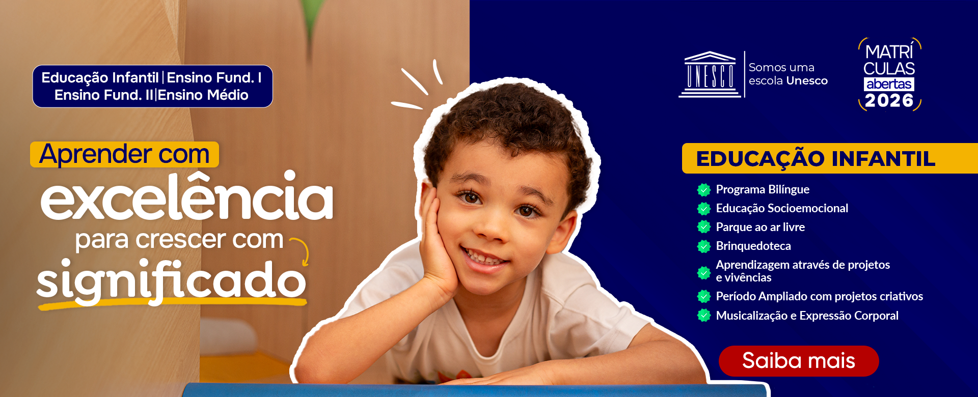 Com professores especialistas, ministramos aulas diárias de Língua Inglesa na matriz curricular, potencializando a aprendizagem e capacitando os alunos para uma comunicação efetiva no idioma.